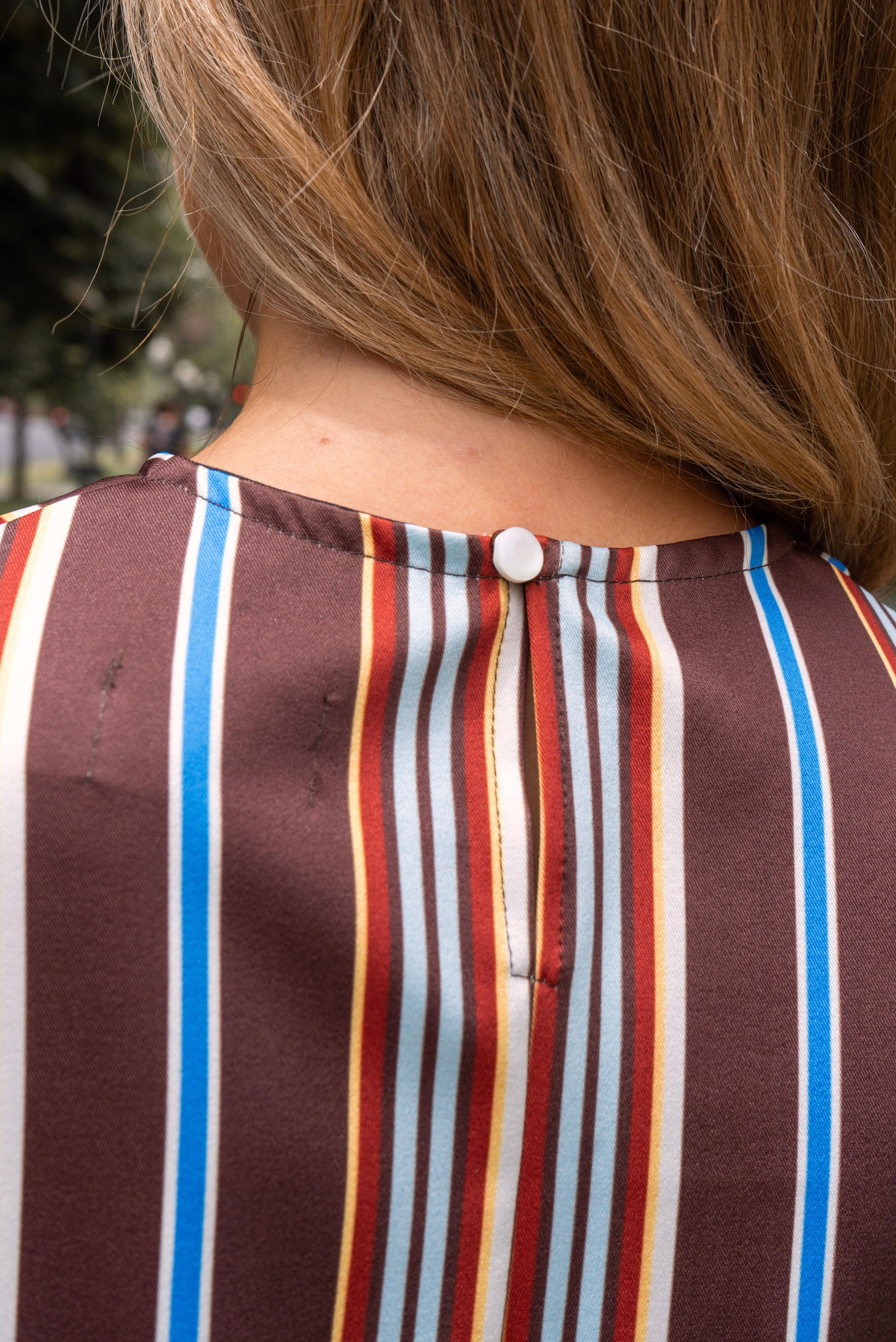 Top sastrero sublimado, escote cerrado con botón en espalda.